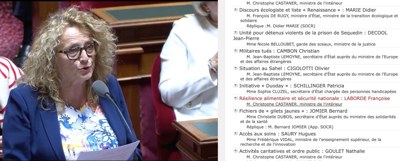A la suite d’une question orale de Madame la Sénatrice Laborde, le 16 mai 2019 au Sénat : « Résilience alimentaire, où en est-on M. Castaner ? »Voir la vidéo du Sénat sur :