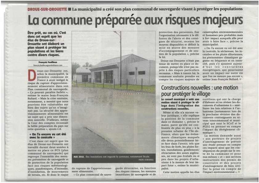 La commune de Droué-sur-Drouette (27) a fait inscrire le risque de rupture des chaînes d’approvisionnement dans son PCS et dans son Dicrim suite à l’intervention de Stéphane Linou.